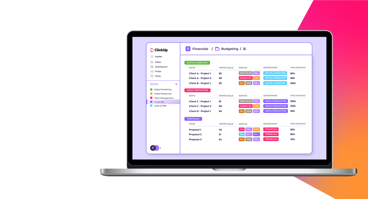 Expect our ClickUp optimization service to unfold over one to six months, depending on how extensive your needs are, from the number of spaces to the intricacies of dashboards and processes. Rest assured, we’re dedicated to crafting an optimized experience that seamlessly aligns with your team’s unique workflow!